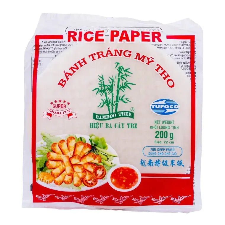 Detta vietnamesiska rispapper är gjort för att ge dig de godaste vårrullarna hemma! Med en diameter på 22 cm är de perfekta för att rullas med dina favoritingredienser. Blötlägg snabbt och fyll med grönsaker, räkor eller tofu. Fungerar både till friterade vårrullar och fräscha sommarrullar!