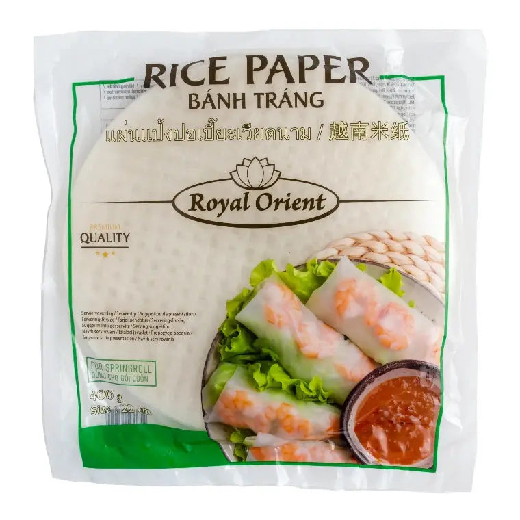 Royal Orients rispapper är en oumbärlig ingrediens i det vietnamesiska köket. Används främst till att göra färska sommarrullar (Gỏi cuốn) fyllda med t.ex. räkor, grönsaker, risnudlar och örter. Blötlägg i ljummet vatten i några sekunder tills de blir mjuka, fyll med valfria ingredienser och rulla ihop. Perfekt till förrätt, lunch eller sommarbuffé!