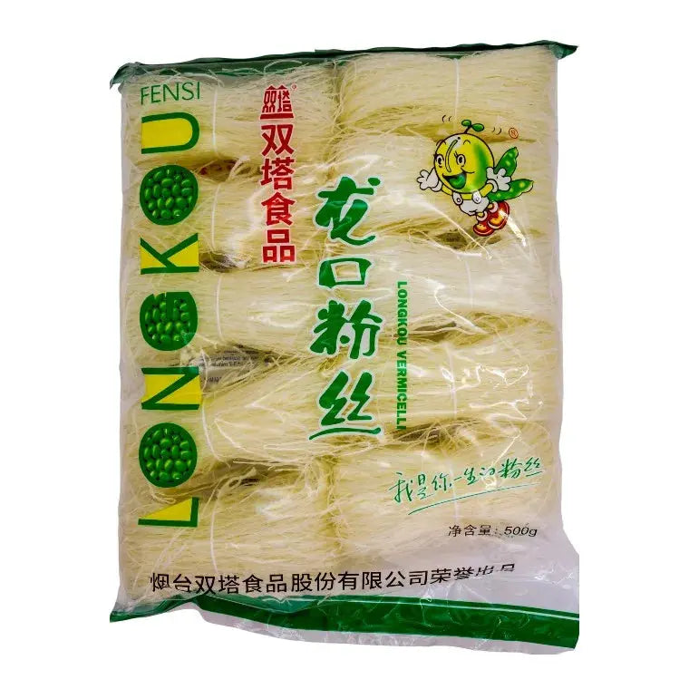 Dessa traditionella glasnudlar från Longkou är tillverkade av mungbönsstärkelse och kända för sin fina, fjäderlätta textur. De blir genomskinliga när de tillagas och suger upp smaker på ett fantastiskt sätt. Perfekta i wok, sallader, vårrullar eller som bas i en värmande soppa. Snabbt, enkelt och gott – ett måste i varje asiatisk matälskarens kök!