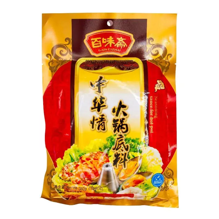 Denna kryddbas för hot pot ger dig den klassiska smaken av en kinesisk fond hemma! Med en balanserad kombination av kryddor, soja och naturliga aromer skapas en mustig och djup smak som passar lika bra till kött som till grönsaker och tofu. Tillsätt bara vatten och låt dofterna fylla köket medan du lagar en härligt värmande måltid att njuta av tillsammans.