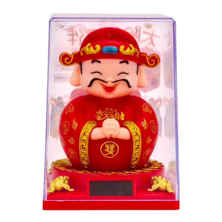 Denna traditionella kinesiska lyckogubbe sprider glädje med sitt stora leende och rörelser som drivs av solceller. Klädd i rött och guld – färger som står för tur och rikedom – är han en perfekt dekoration för hem, kontor eller butik. En fin lyckobringare och uppskattad presentidé!
