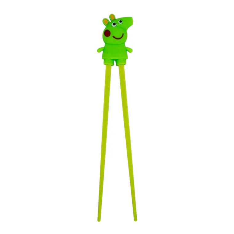 Dessa charmiga träningspinnar pryds av en glad liten grön grisfigur som sprider massor av glädje vid varje måltid. Perfekta för barn och nybörjare som vill öva upp tekniken på ett tryggt och lekfullt sätt. Lätta att hålla i och härliga att använda till allt från nudlar och ris till sushi och dumplings.
