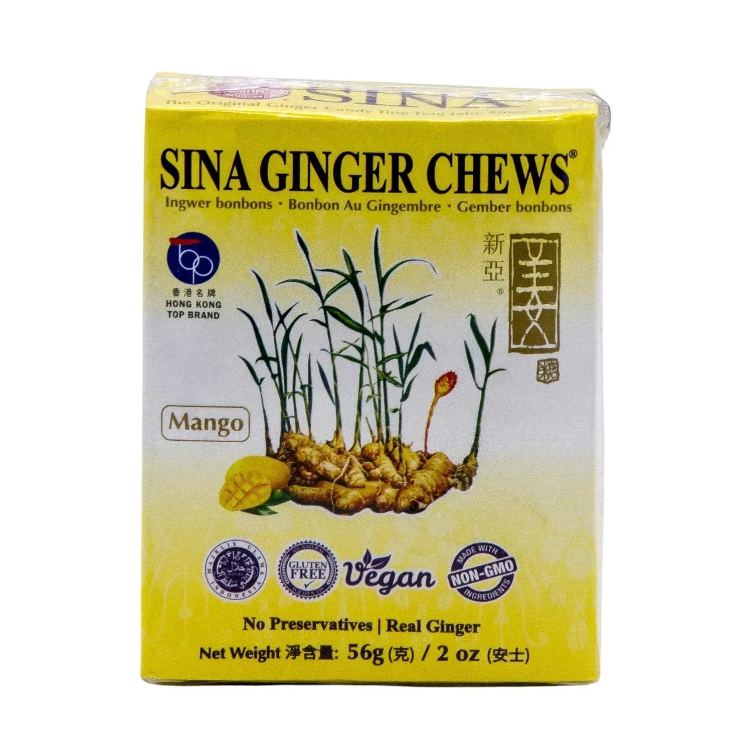 Ingredienser: Rörsocker, ingefära, tapiokastärkelse, naturliga mangosmaker